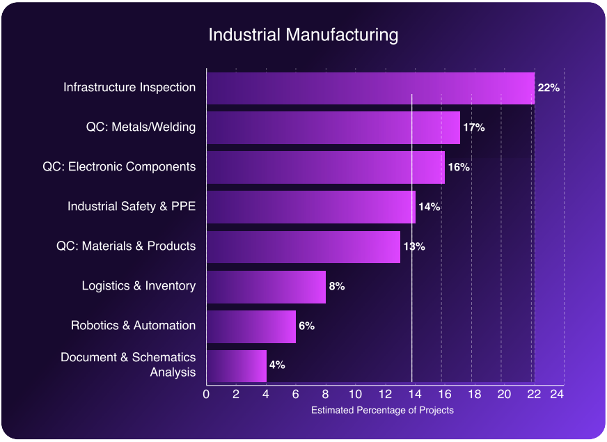 - Infrastructure Inspection (22%): Automated detection of cracks, leaks, and mechanical wear on equipment before they lead to unplanned downtime, supporting a shift from scheduled to predictive maintenance.