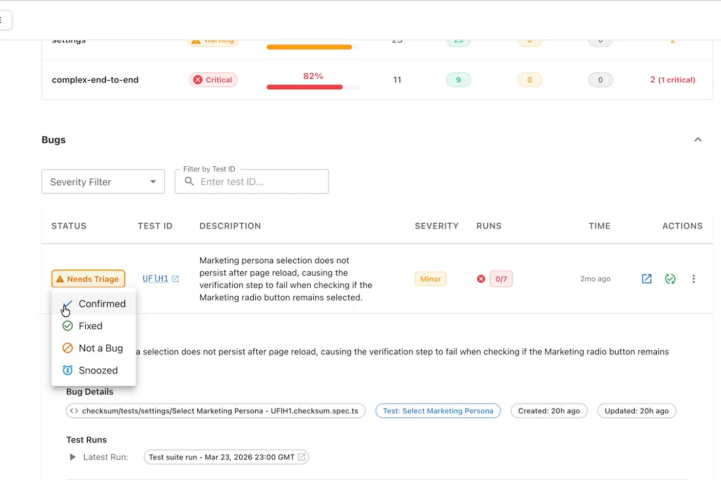 Where they differ is in how that work gets done. Checksum focuses on autonomous test generation and maintenance directly in your codebase, continuously updating Playwright tests as your app changes with minimal input from your team. QA Wolf, in contrast, combines its AI-driven platform with a fully managed QA service, where dedicated engineers build, run, and maintain your tests while delivering human-verified bug reports.